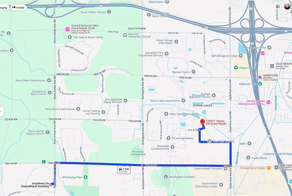 Amplifed Life & TRV | FIT gym are conveniently located only 5 minutes apart from one another. Both organizations offer morning and evening sessions on most days of the week. Consider adding a counseling or fitness session to your already scheduled sessions and enjoy all the extra benefits of a MindBody Fitness approach to wellness.